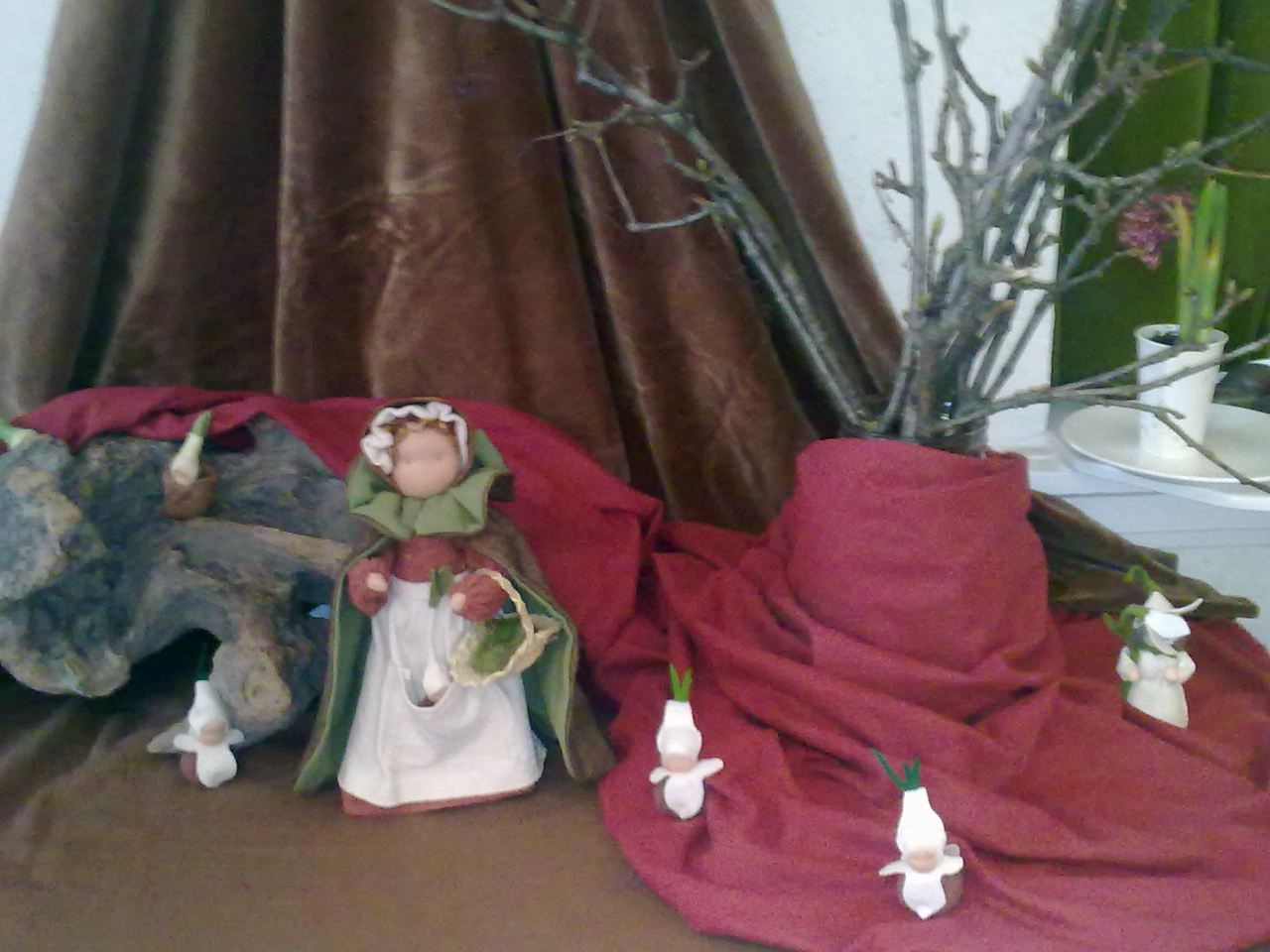 Onze seizoenstafel is daarvoor een heel belangrijk en aansprekend hulpmiddel. Ze helpt kinderen de kringloop van het jaar te volgen. Dat wat buiten in de natuur gebeurt, haal je naar binnen. Ook de feesten die in een jaar voorbij komen worden erin verwerkt. Kinderen leren zo het jaarritme begrijpen en voelen.